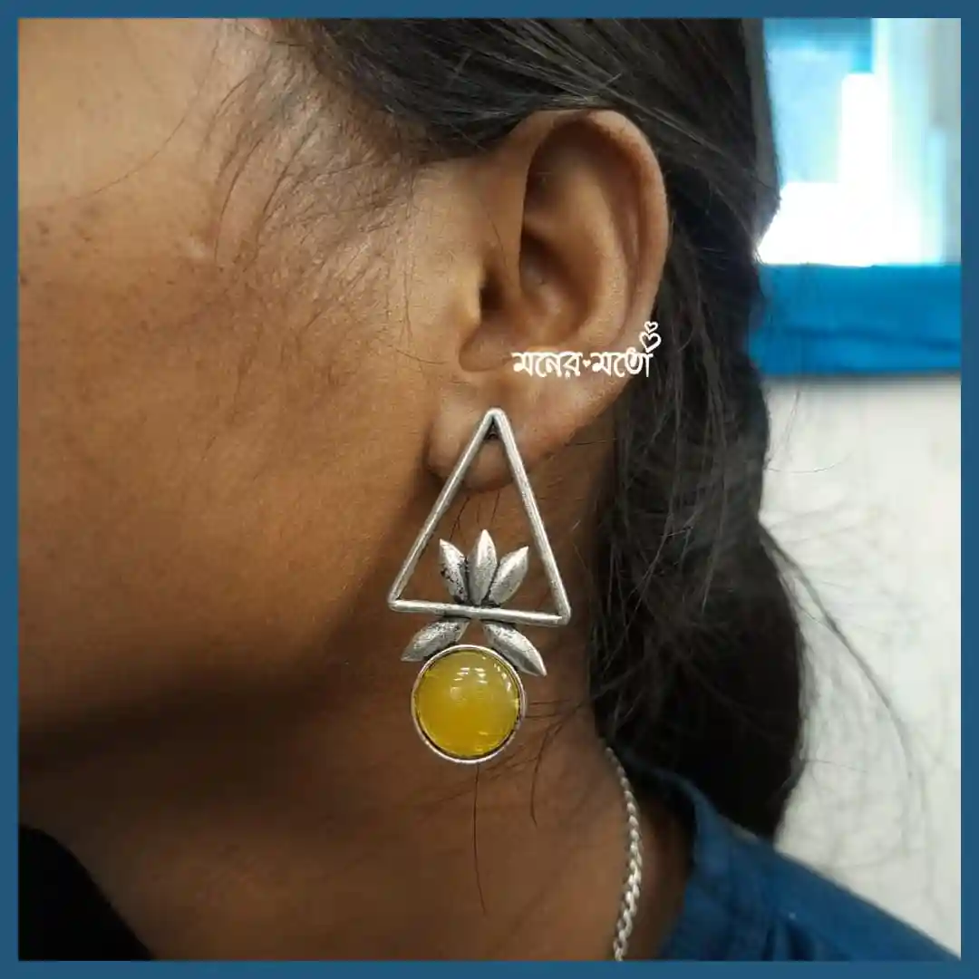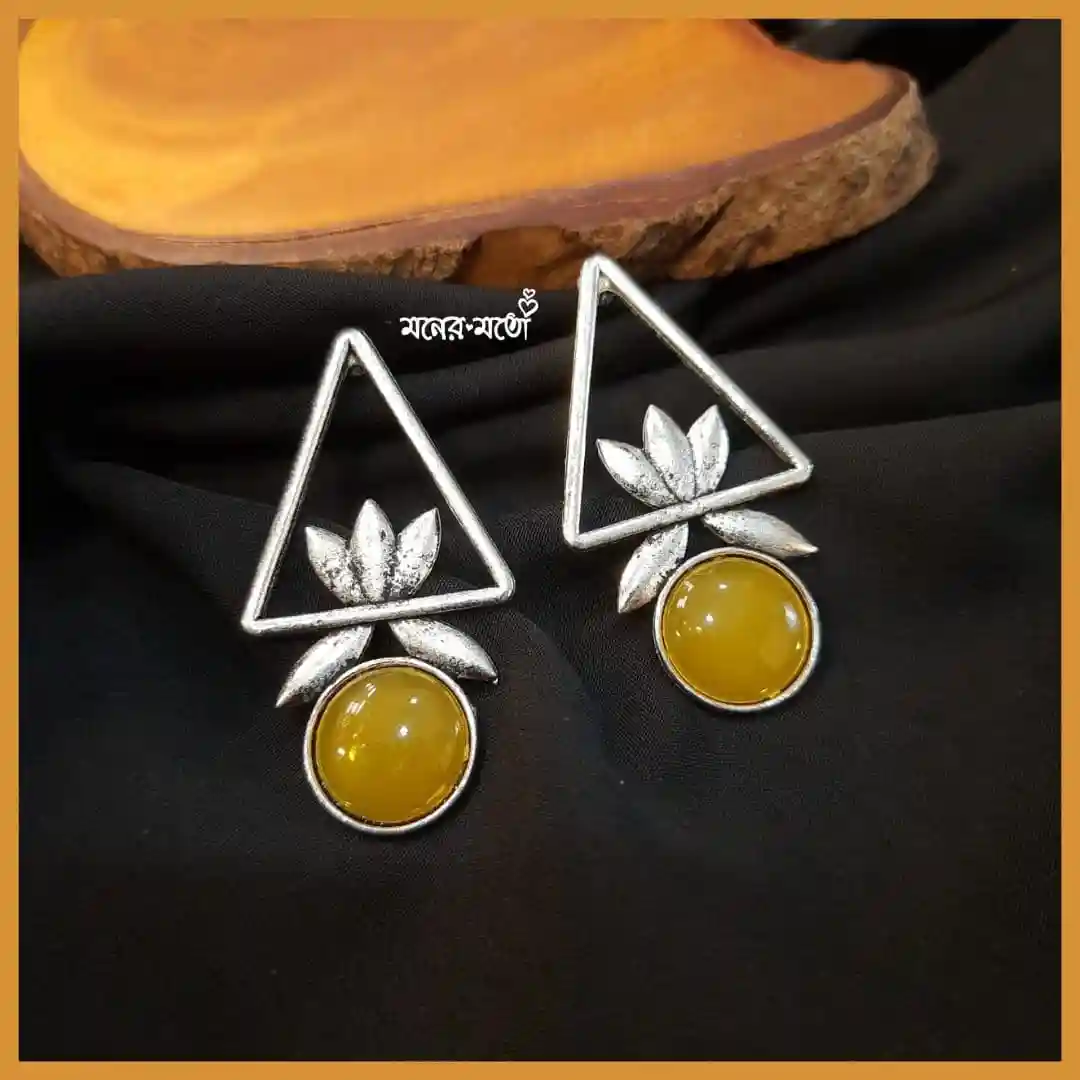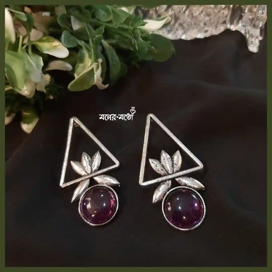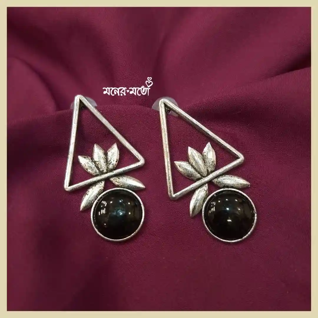 These Silver Replica Lotus Earrings beautifully blend geometry with nature-inspired elegance. Crafted in a silver-finish replica metal, the earrings feature a minimal triangular frame that holds a delicately sculpted lotus flower motif, symbolising purity, strength, and inner calm. A glossy stone drop at the base adds balance and contrast, enhancing the overall visual appeal.