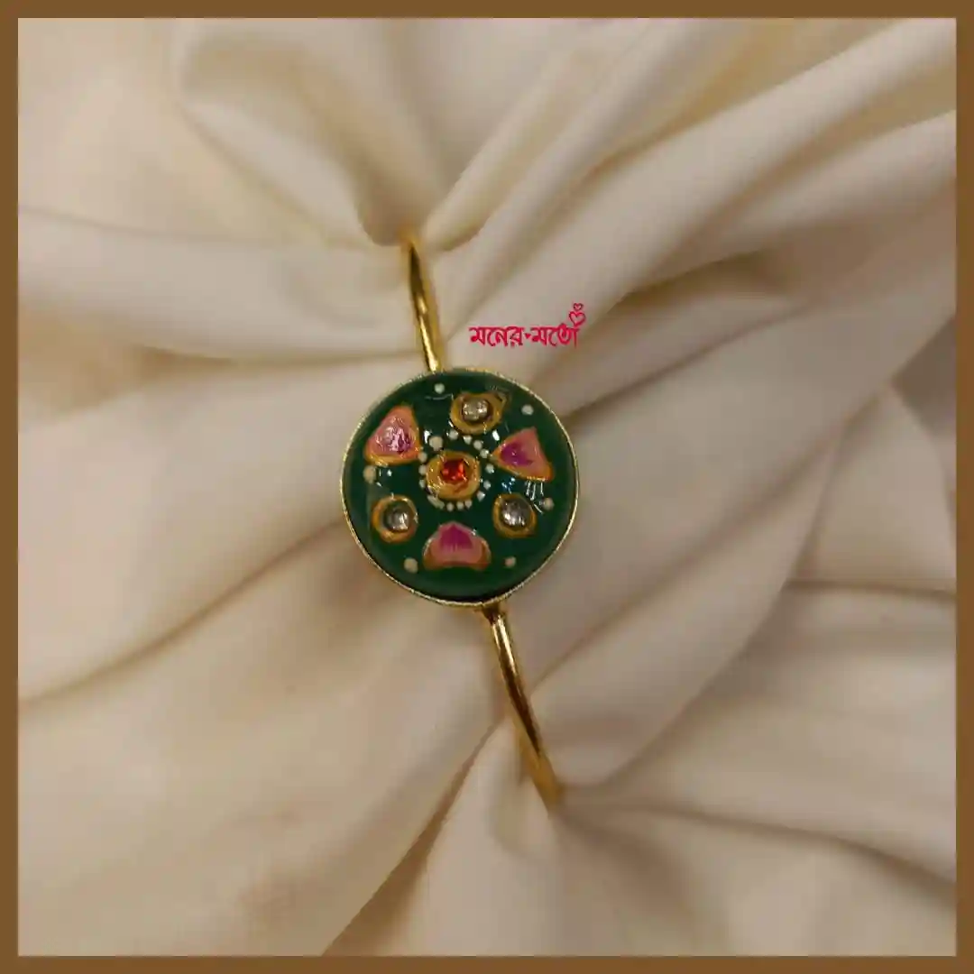 Hand-painted Green Tanjore Art Brass Bracelet featuring floral motifs crafted on premium brass.