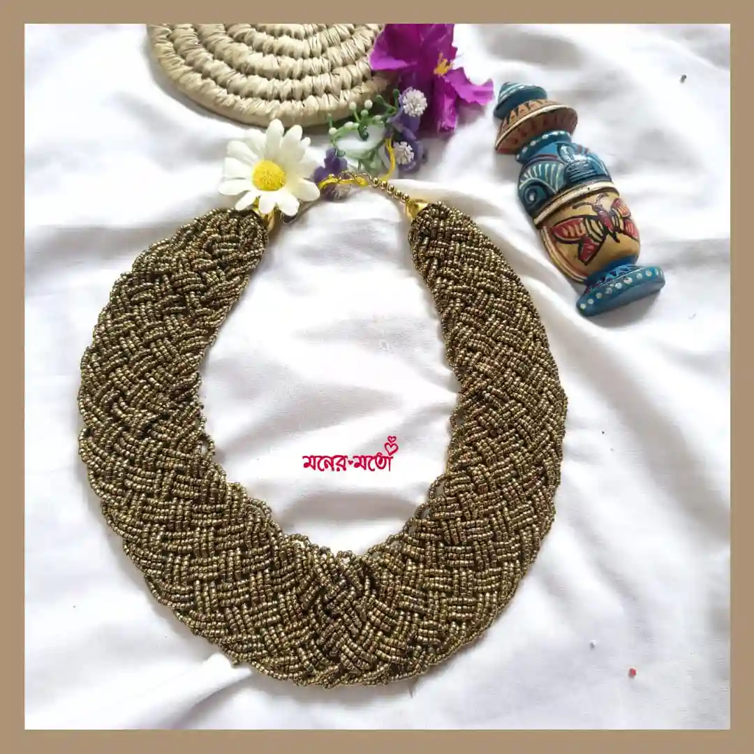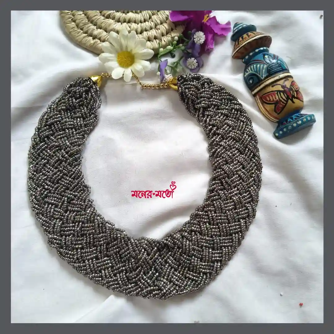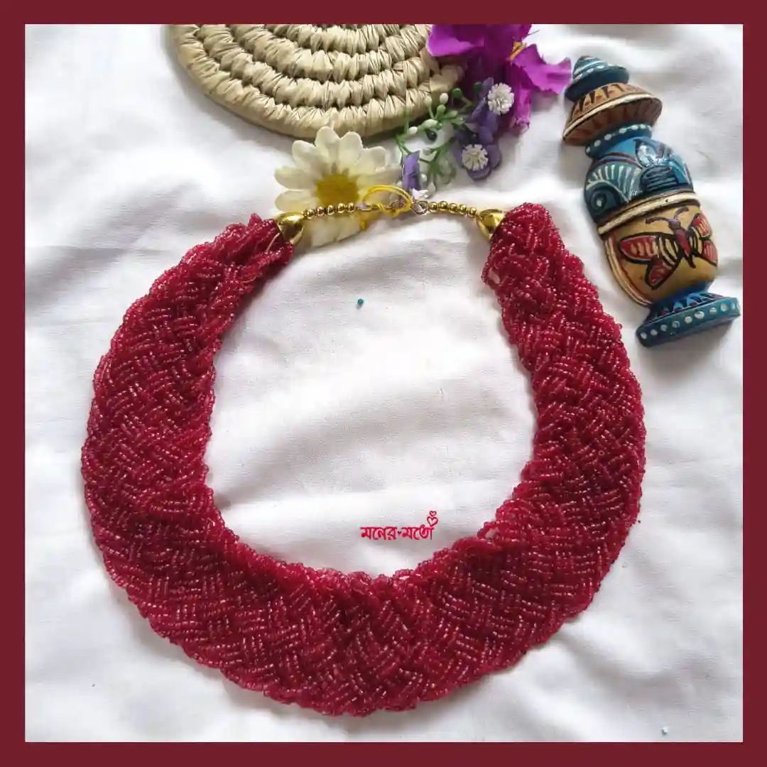 Add a playful burst of colour to your jewellery collection with this Handmade Sugar Beads Chatai Necklace. Designed in a beautiful chatai (woven) pattern, this piece reflects traditional craftsmanship with a modern bohemian twist. Crafted using tiny sugar beads, the intricate weaving creates a rich texture and vibrant look that instantly enhances your outfit. The multicolor design makes it highly versatile, allowing you to pair it effortlessly with different styles and colours.