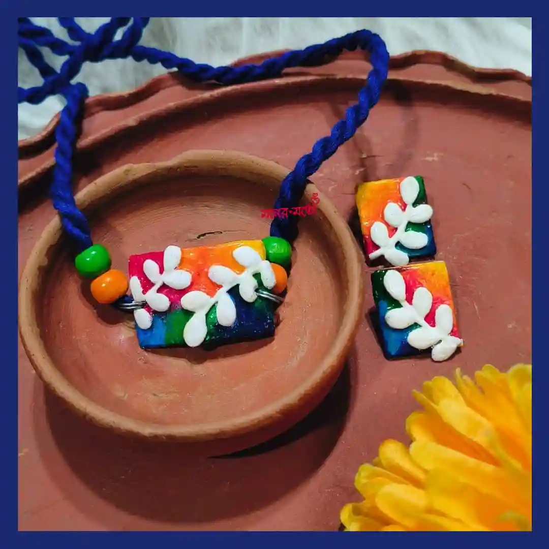 A bold Clay Floral Choker Set designed to sit beautifully at the neckline—modern, artistic, and festive.
