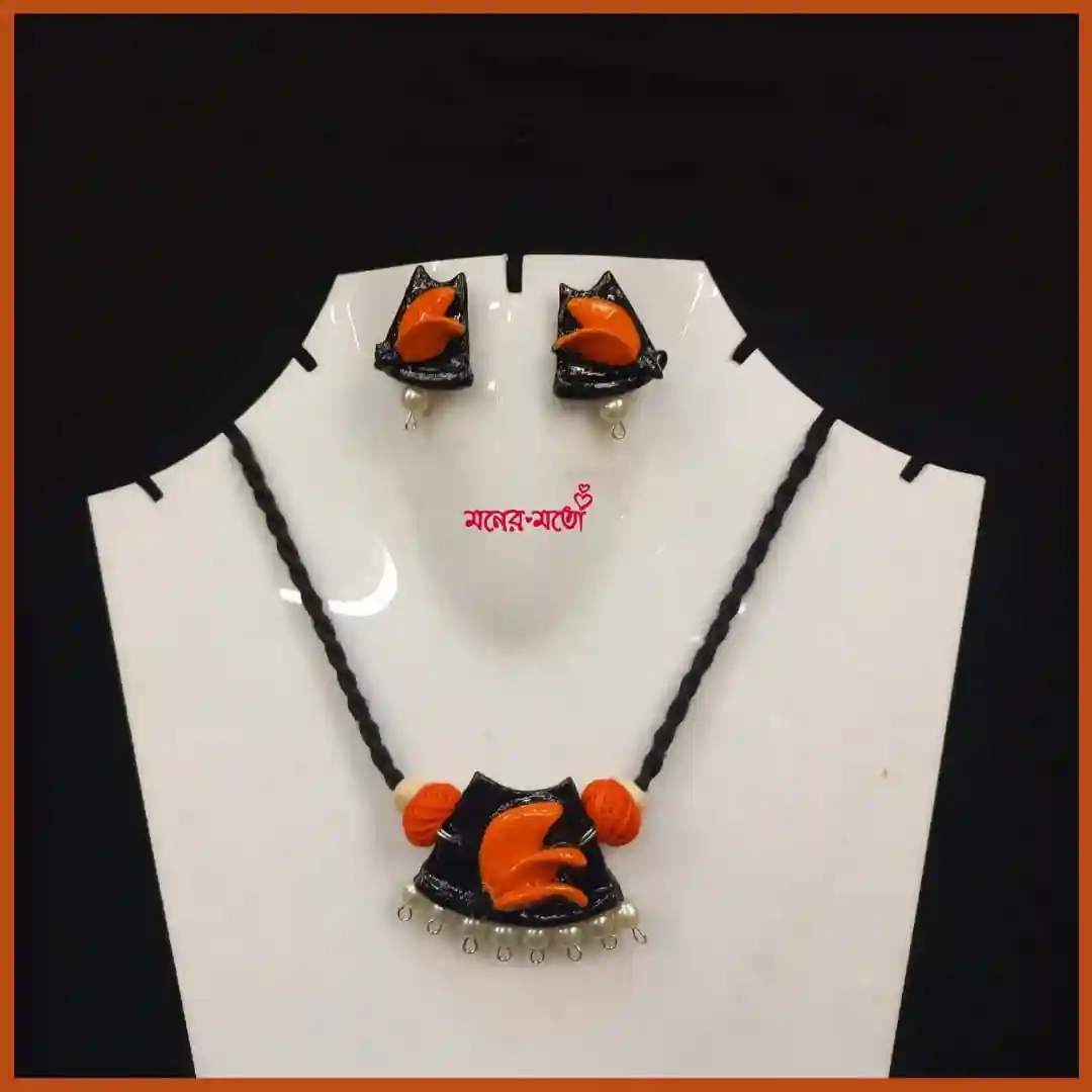 Inspired by the vibrant Palash flower and enhanced with delicate pearl accents, this Clay Pearl Palash Choker Set reflects elegance, purity, and festive charm. Handcrafted with intricate detailing, the soft contrast between earthy clay tones and luminous pearls creates a refined ethnic look. Lightweight and comfortable, this choker set is ideal for Saraswati Puja, cultural occasions, and elegant traditional styling.
