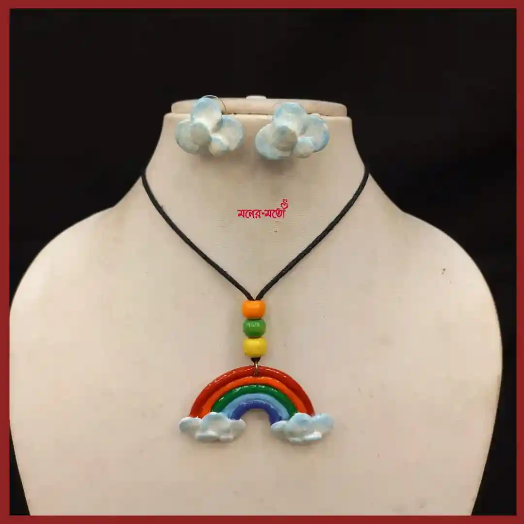 Add colour to your festive or casual look with Moner Moto’s handmade Clay Rainbow Cloud Colourful Choker Set — a cheerful, handcrafted piece symbolizing hope and happiness.