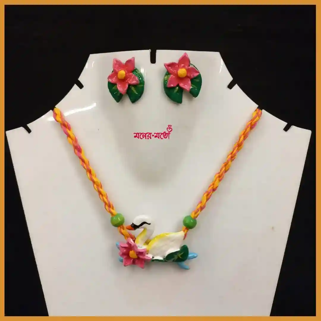 Celebrate wisdom, purity, and the beauty of nature this spring with Moner Moto’s Saraswati Puja Air Dry Clay Swan Choker Set – Spring Nature Collection. The handcrafted white swan symbolizes grace and knowledge, while the surrounding floral and leafy accents reflect the freshness of blooming gardens and seasonal renewal.