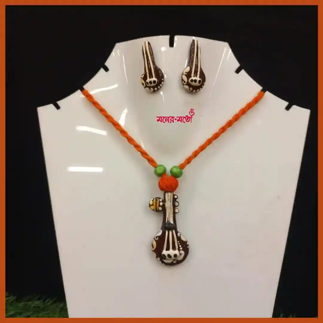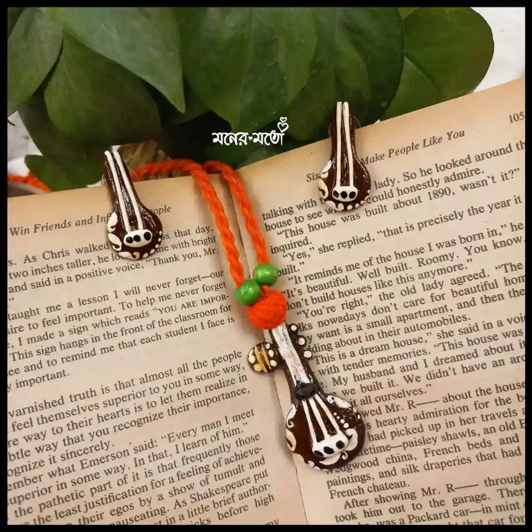 Moner Moto’s Clay Veena Choker Set is a Saraswati Puja special handcrafted jewellery piece inspired by the sacred musical instrument associated with Goddess Saraswati.