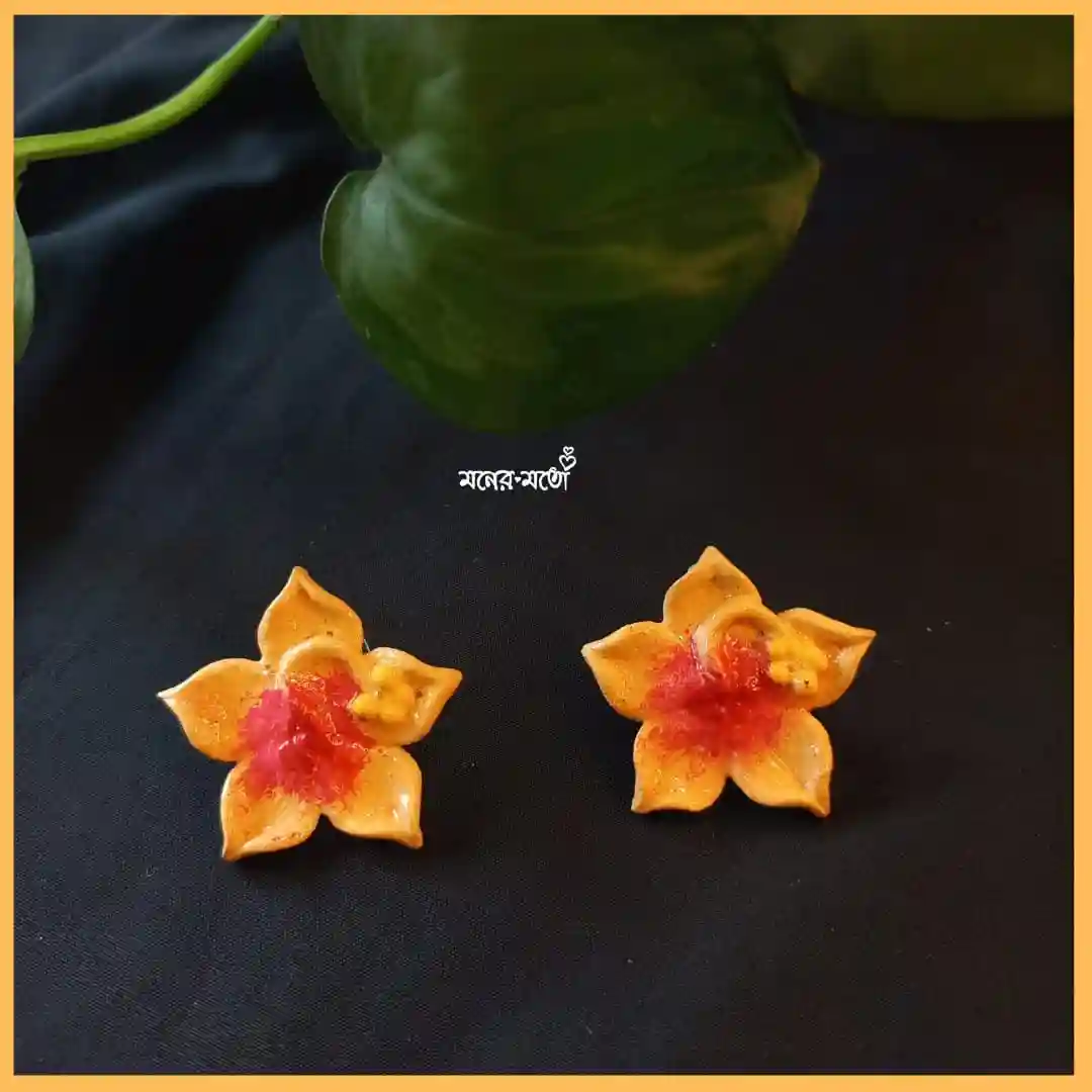 Graceful Devotion Bloom Hibiscus Clay Earrings from Moner Moto, inspired by purity and the peaceful aura of Goddess Kali.