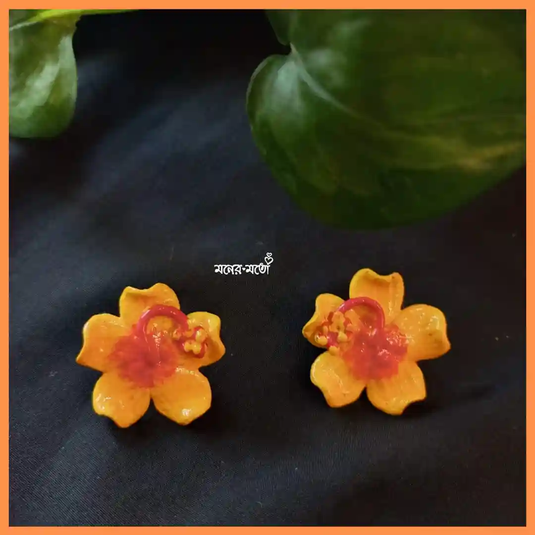 Handmade Yellow Hibiscus Clay Earrings from Moner Moto – lightweight, festive, and inspired by the radiance of Goddess Shakti.