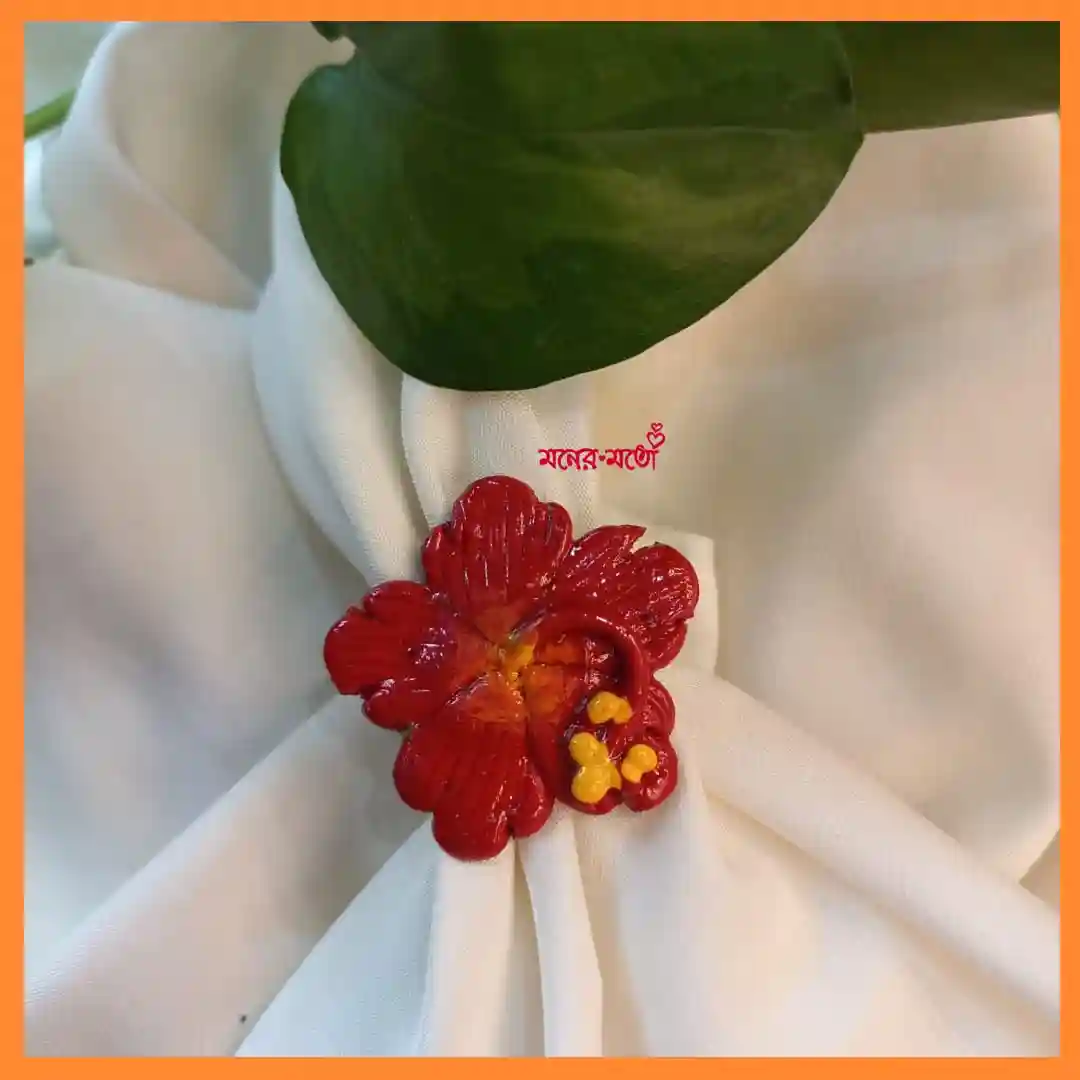 Adorn your fingers with divine grace — handcrafted Clay Red Hibiscus Finger Ring from Moner Moto, designed for Kali Puja and festive charm.