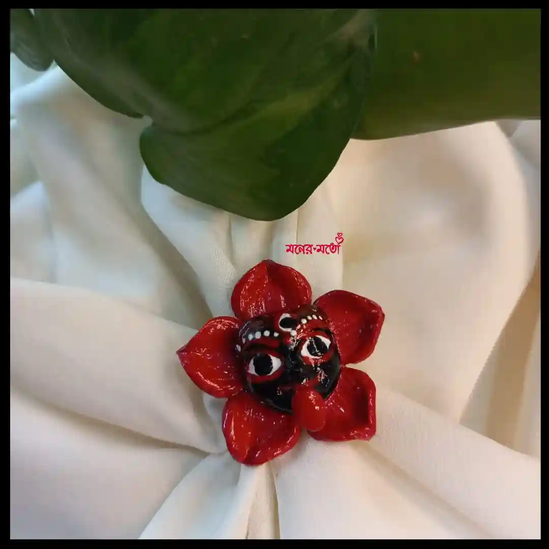 Invoke the spirit of Maa Kali with this handcrafted Maa Kali Clay Finger Ring from Moner Moto, featuring Her serene face on a red hibiscus — a perfect statement for Kali Puja.