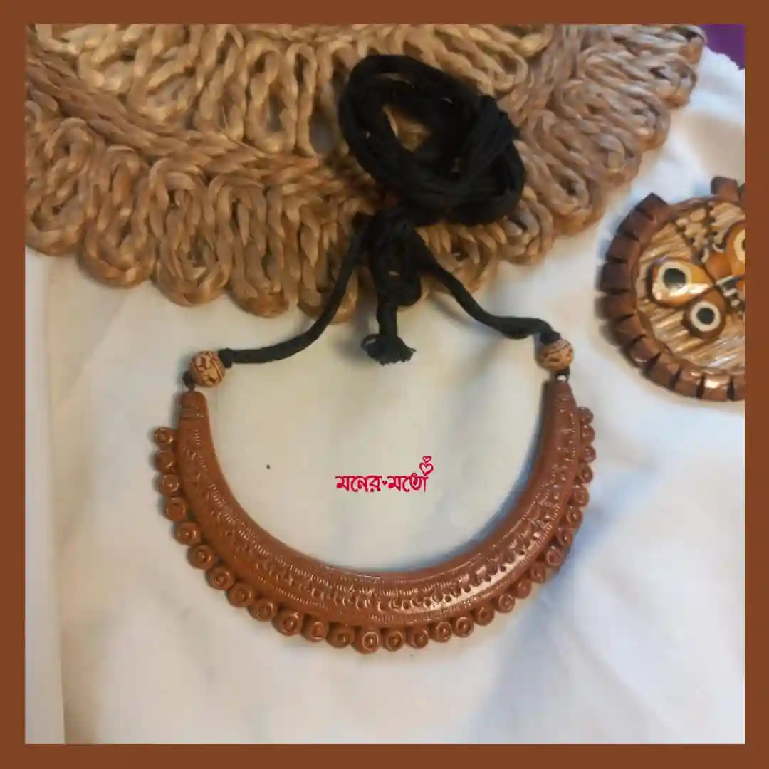 Moner Moto’s Classic Terracotta Necklace is designed for modern women who love traditional aesthetics. The simple yet detailed design makes it suitable for office environments, offering a refined and graceful look. Its lightweight nature ensures comfort, while the handcrafted finish adds a unique touch to your style.