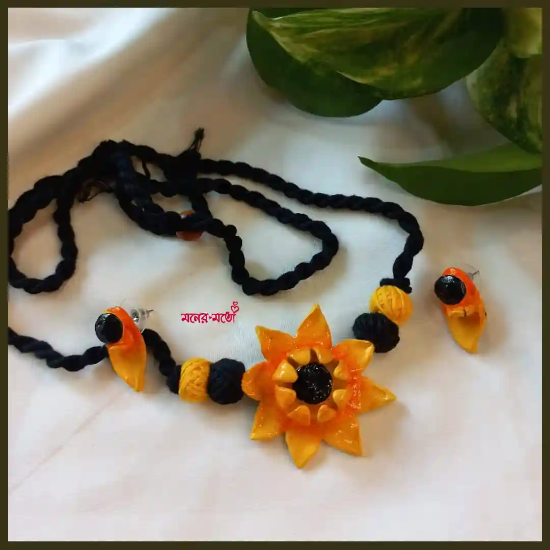 Bring the freshness of a spring garden to your jewellery collection with the Clay Floral Necklace Set, from Moner Moto. Each petal is hand-sculpted from polymer clay, painted with soft, vivid hues to resemble real flowers in full bloom. This set celebrates the artistry of Indian handmade jewellery — where every curve and colour tells a story of patience, devotion, and creativity. Lightweight and durable, this floral masterpiece complements both traditional sarees and contemporary outfits. Whether you’re dressing up for Durga Puja, Kali Puja, weddings, or festive gatherings, this necklace set is sure to make you stand out with its elegant natural charm.