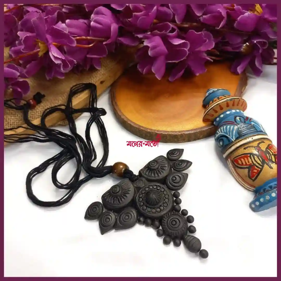 - Material: Black Terracotta (Kalo Mati), Cotton Thread, Wooden Beads