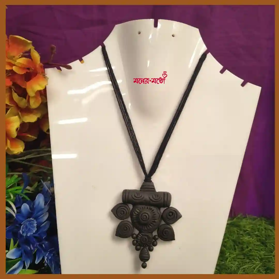 This Kalo Mati Floral Necklace features delicate patterns carved into the clay surface, offering a feminine and artistic touch.
