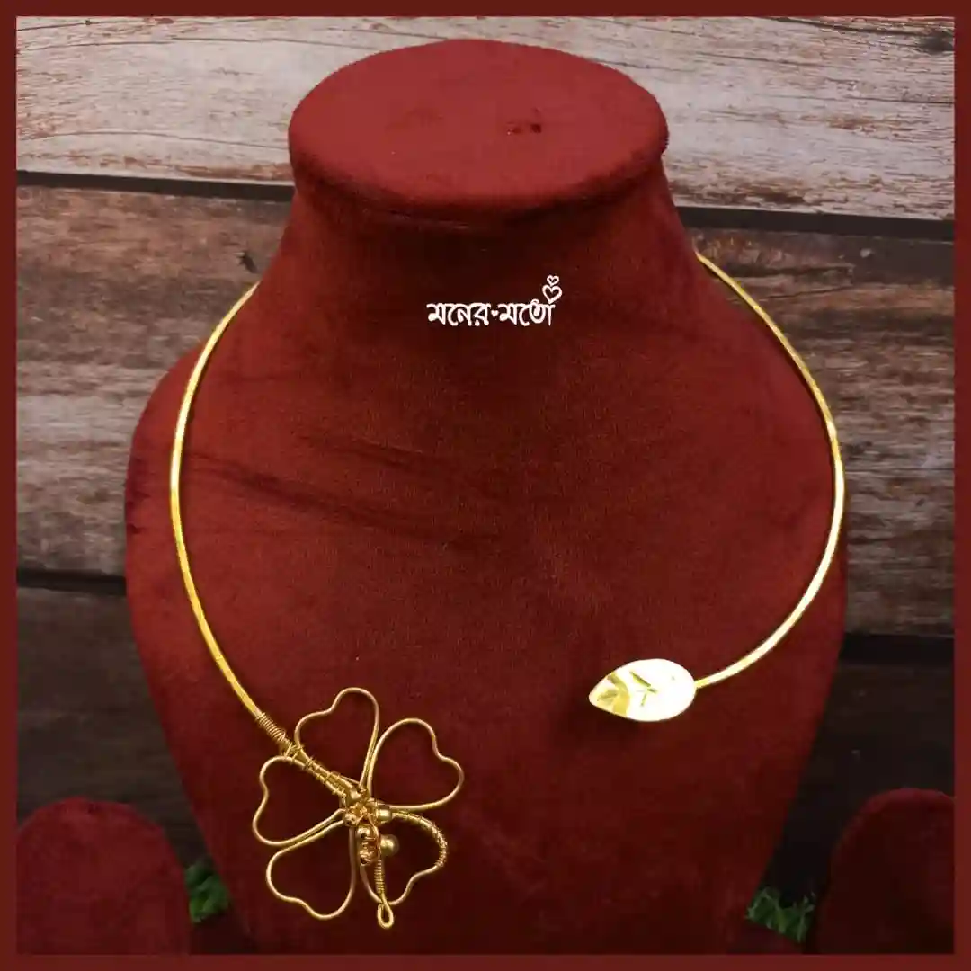 A bold and elegant Brass Floral Hansuli necklace featuring beautiful floral motifs, designed to add a touch of traditional charm and rustic elegance to your ethnic style.