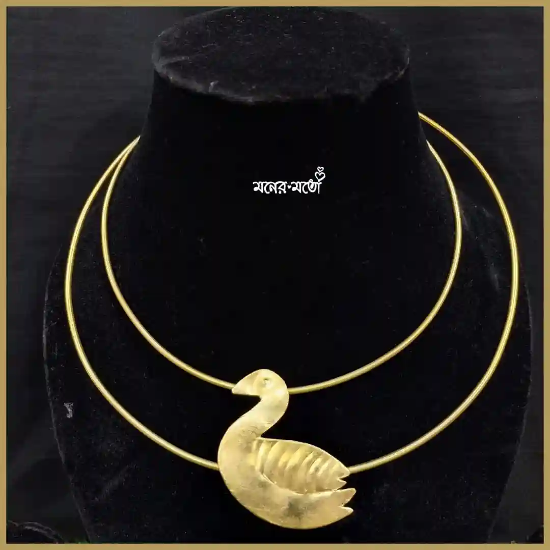 A graceful Brass Swan Hansuli Necklace featuring an elegant swan-inspired design, crafted to bring a touch of artistic heritage and bold ethnic style to your jewellery collection.