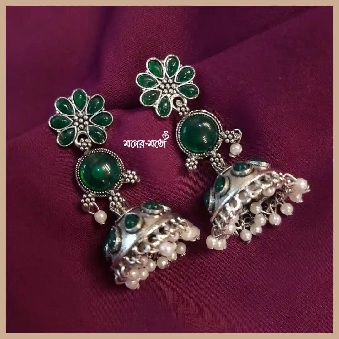Experience the sophistication of Kolkata’s best fashion jewelry brand Moner Moto’s Exclusive German Silver Earrings.