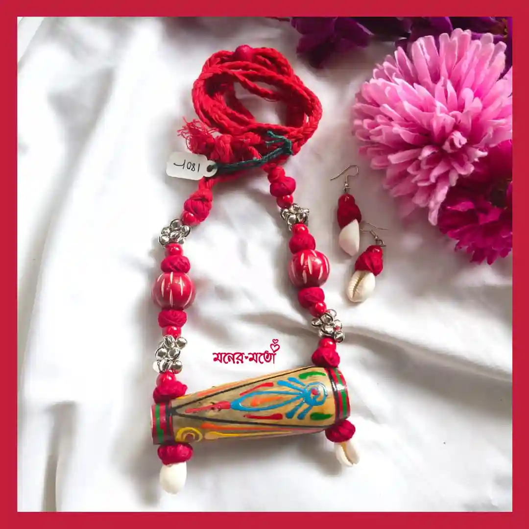 Celebrate folk music and culture with this Handmade Bamboo Dholok Necklace Set—an artistic tribute to traditional rhythms.